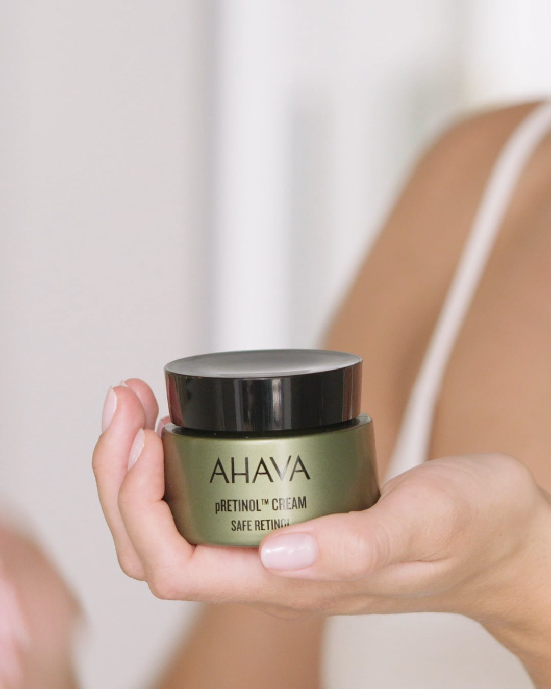 The 24-hour moisturizer for day and night is a true all-rounder that reduces wrinkles and fine lines. Enriched with biofunctional, plant-based active ingredient concentrates like flaxseed and the flower extract of Jambu, it ensures well-hydrated, smoother, and more even skin. It is based on the exclusive AHAVA pRetinol™ patent with the Dunaliella Salina algae from the Dead Sea, which provides the skin with retinol precursors that are then converted into retinol by the skin. This offers a skin-friendly, safe alternative to retinol - specially developed for your skin with all the benefits, but without the side effects. This cream, suitable for all skin types, reduces wrinkles, smooths the skin, and provides long-lasting moisture. Vegan, pregnancy-safe, alcohol-free, GMO-free, and paraben-free.
