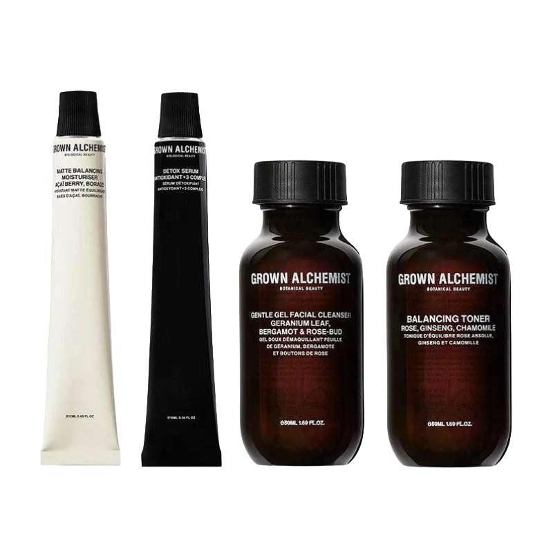 The limited edition with a 20% price advantage includes: Gentle Gel Facial Cleanser 50ml, Balancing Toner 50ml, Detox Serum 10ml + Matte Balancing Moisturiser 12ml)