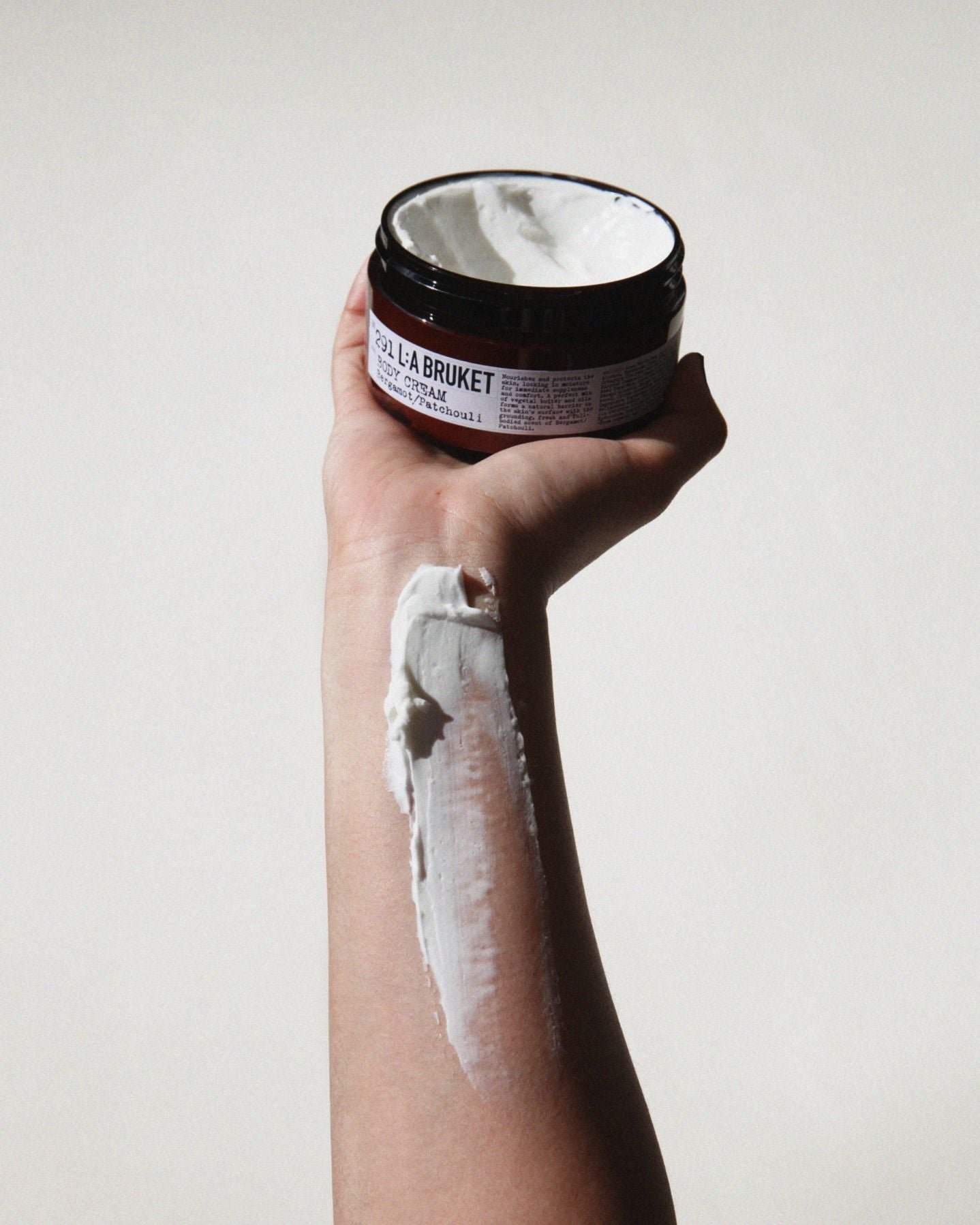 Die Körpercreme ist für alle Hauttypen geeignet und besteht aus einer seidigen Mischung aus pflanzlichen Buttern und Ölen, die auf der Haut eine natürliche Barriere bildet und die Feuchtigkeit lang anhaltend einschließt. Sie ist reichhaltig und zieht schnell ein. Biologisches Babassu-Öl versorgt die Haut intensiv mit Feuchtigkeit, während Kakaobutter sie angenehm weich und geschmeidig macht, ohne zu fetten. Sie nährt die Haut und stellt ihr natürliches Gleichgewicht wieder her, während sie sie gleichzeitig vor Trockenheit und äußeren Stressfaktoren schützt. Der erdende Duft von Bergamotte und Patschuli, der reich an holzigen Akzenten ist, die durch frische Noten fein abgemildert werden, sorgt für ein rundum angenehmes Hautpflegeerlebnis. COSMOS-zertifiziert, Made in Sweden, Vegan, 99% natürlich