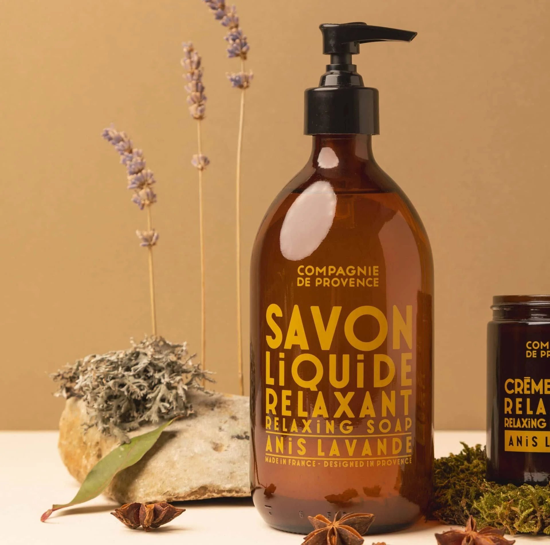 This liquid soap, with a cleansing base of coconut and sunflower oil, which is saponified in a traditional method in a kettle, has a luxurious gel texture that gently cleanses hands and body. Enriched with exceptional plant oils from Provence, it provides a sense of comfort and relaxation thanks to a blend of essential oils from lavender and star anise, which have calming properties. Free from dyes and animal fats. Relaxing scent, created in Grasse. Tips for well-being: Washing your hands is one of the most important measures for caring for your skin. When you wash your hands with this soap, keep them together for a few seconds and hold them under your nose. Then inhale the scent - and its effect.