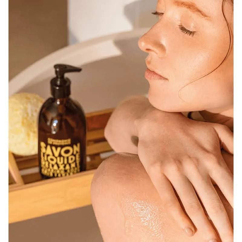 This liquid soap, with a cleansing base of coconut and sunflower oil, which is saponified in a traditional method in a kettle, has a luxurious gel texture that gently cleanses hands and body. Enriched with exceptional plant oils from Provence, it provides a sense of comfort and relaxation thanks to a blend of essential oils from lavender and star anise, which have calming properties. Free from dyes and animal fats. Relaxing scent, created in Grasse. Tips for well-being: Washing your hands is one of the most important measures for caring for your skin. When you wash your hands with this soap, keep them together for a few seconds and hold them under your nose. Then inhale the scent - and its effect.