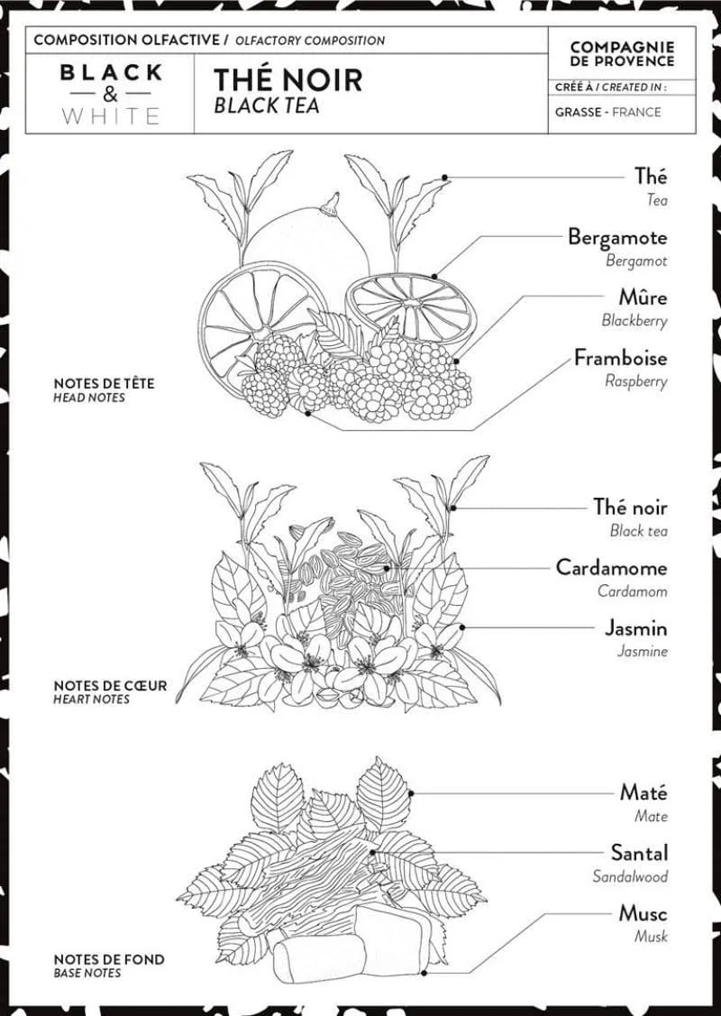 The Black Tea Liquid Marseille Soap by Compagnie de Provence is enriched with natural glycerin and coconut oil, known as one of the best oils in the world for keeping the skin healthy and youthful. The iconic Marseille soap cube lives on in a new, liquid version: contemporary and suitable for everyday use. The soap is still traditionally prepared in a copper cauldron and contains 97.7% natural ingredients. It has a high concentration of vitamin E, protecting, moisturizing, and repairing the skin. Additionally, it soothes irritated skin and positively affects scars and stretch marks. Organic first-press olive oil is the other star of this liquid soap. Besides olive oil, it helps the skin stay optimally nourished, being rich in antioxidants (vitamin E, phytosterols, polyphenols). These antioxidants combat free radicals in a highly effective way, thus fighting skin aging.