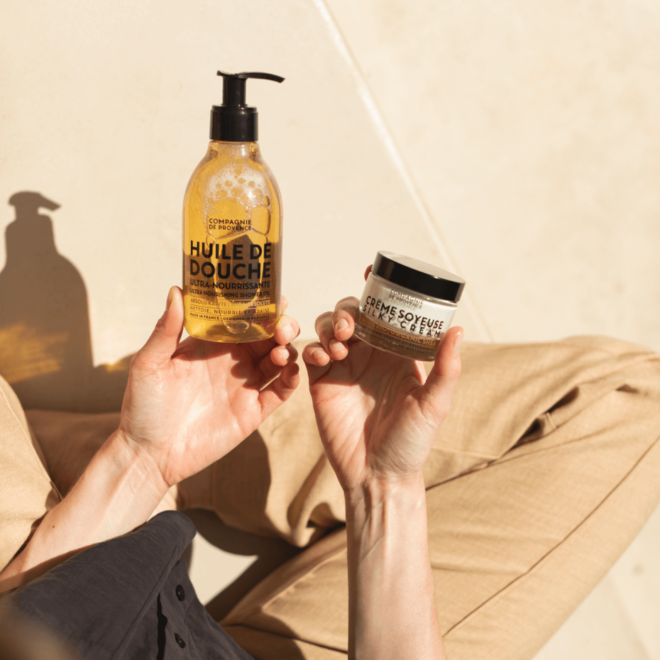Enriched with Shea Absolute and three exceptional botanical oils, this shower oil cleanses and cares for very dry and sensitive skin. Made in the heart of Provence, it contains gentle, plant-based surfactants, making it suitable for both the face and body. Shea Absolute has nourishing properties and is rich in moisturizing agents. Combined with a precious trio of botanical oils from Provence, it envelops the skin in a soothing foam, leaving it clean, cared for, and heavenly scented. 95% of ingredients are of natural origin.