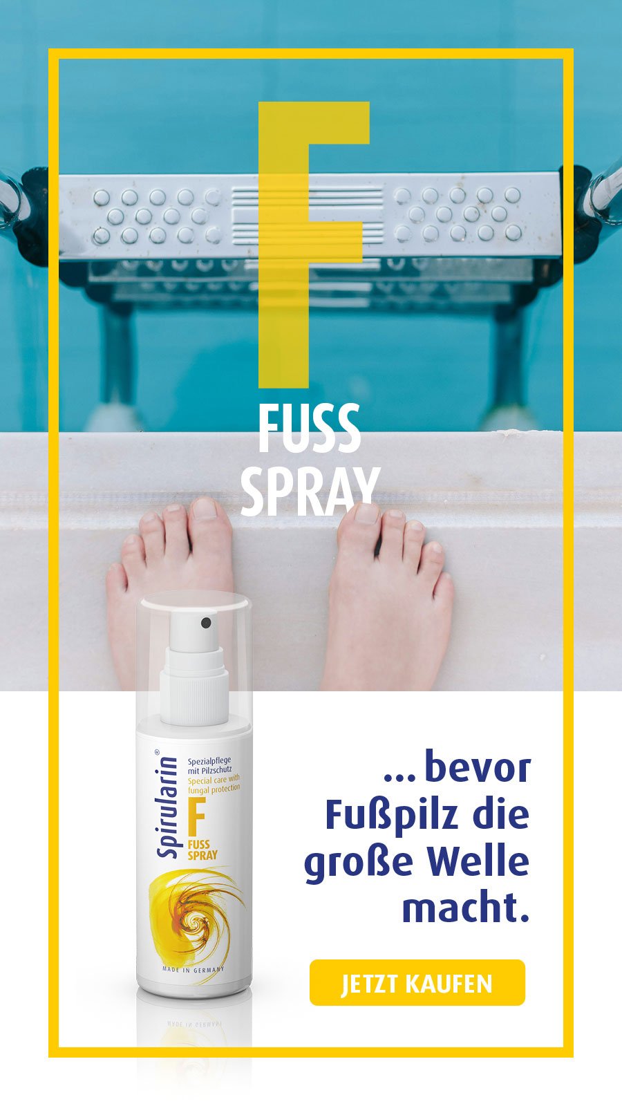 Spirularin® F Fußspray ist der ideale Begleiter für aktive Menschen und Diabetiker, die häufig zu Fußpliz neigen. Durch den patentierten Mikroalgenwirkstoff Spiralin® und weitere wertvolle Inhaltsstoffe wehrt es schädliche Keime wie Pilze und Bakterien ab, stabilisiert zugleich die natürliche Hautflora und fördert die Zellregeneration.