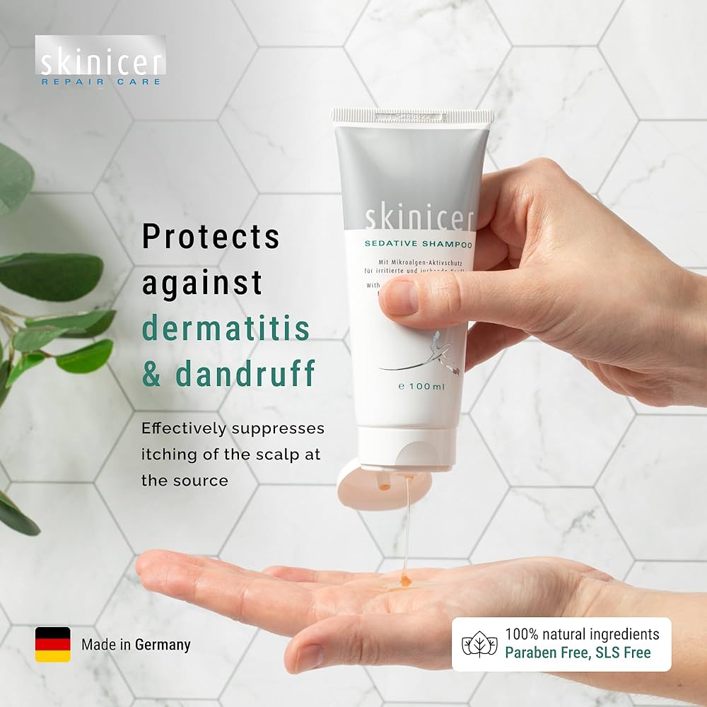The skinicer® Sedative Shampoo by OceanPharma is ideal for washing hair when dealing with issues caused by itchy and irritated scalp. The patented microalgae active ingredient Spiralin® effectively suppresses the germs that trigger itching and promotes scalp regeneration. The skinicer® Sedative Shampoo soothes, calms, moisturizes, and removes excess skin flakes. For a healthy scalp and smooth, supple hair.