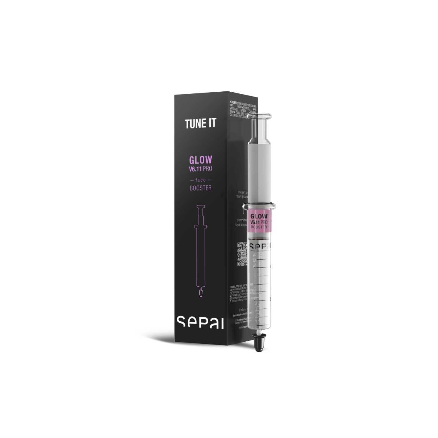 V6.11 GLOW PRO Face Tune it is an extract for personalizing your SEPAI skincare with instant effect. The highly active ingredients of the GLOW PRO make the skin glow in seconds. Stress, lack of sleep, pollution, UV radiation, and stress make the skin look dull. V6.11 GLOW PRO focuses on combating these factors, creating a beautiful, healthy glow on the skin and making it look younger. Mix the concentrate with the SEPAI skincare from the URBAN or RECOVERY lines. Choose a moisturizer (finishing care for day/night) for GLOW PRO to keep the glow visible. Do not use it pure! Combine with V6.4 or V6.9 for dry skin. Suitable for all skin types. Vegan. Free from parabens, isothiazolinones, imidazolidinyl urea, allergenic preservatives, BHT, BHA, aggressive emulsifiers and surfactants, petroleum-based ingredients (paraffins, petrolatum, PEG), silicone, allergens, solvents, additives, potentially irritating substances, and others.
