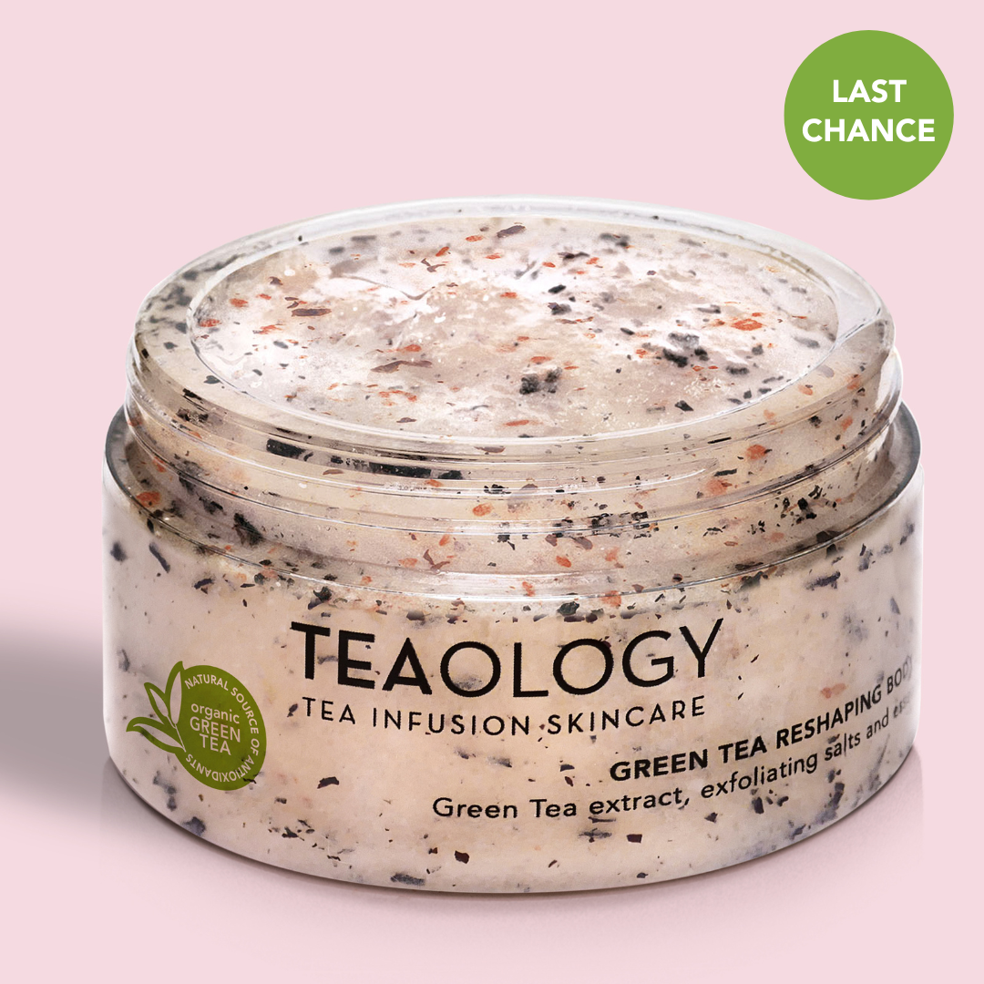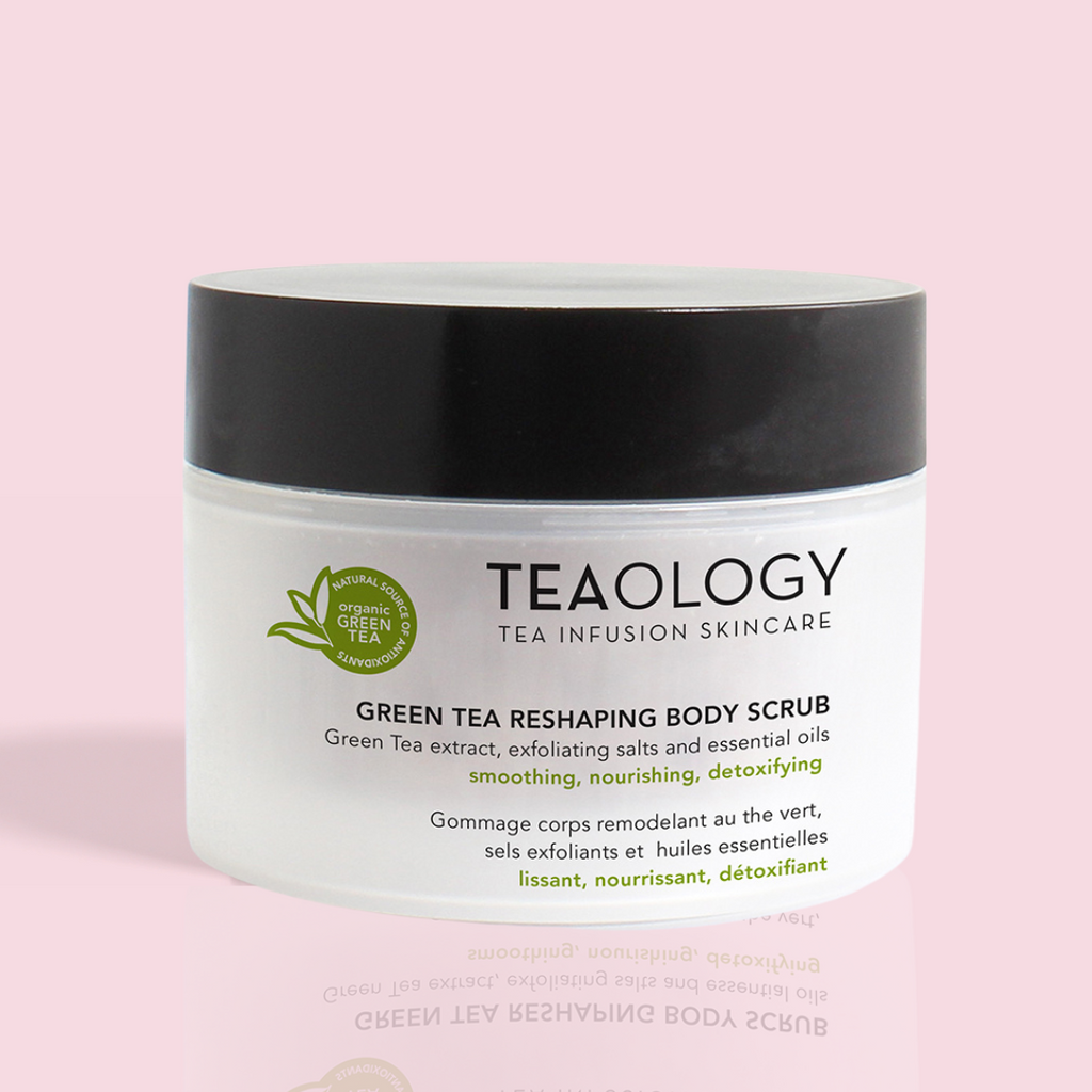 The Teaology Green Tea Reshaping Body Scrub is an incredible body scrub made from a mixture of whole sea salts, a concentrate of tea leaves, and essential oils. It smooths the skin and helps eliminate excess fluids, thanks to the iono-osmotic effect of the sea salts. Once dead cells and impurities are removed, the skin becomes more receptive, allowing the shaping and reducing effects of green tea to unfold. The nourishing, energizing, and toning oils make the skin soft and supple.