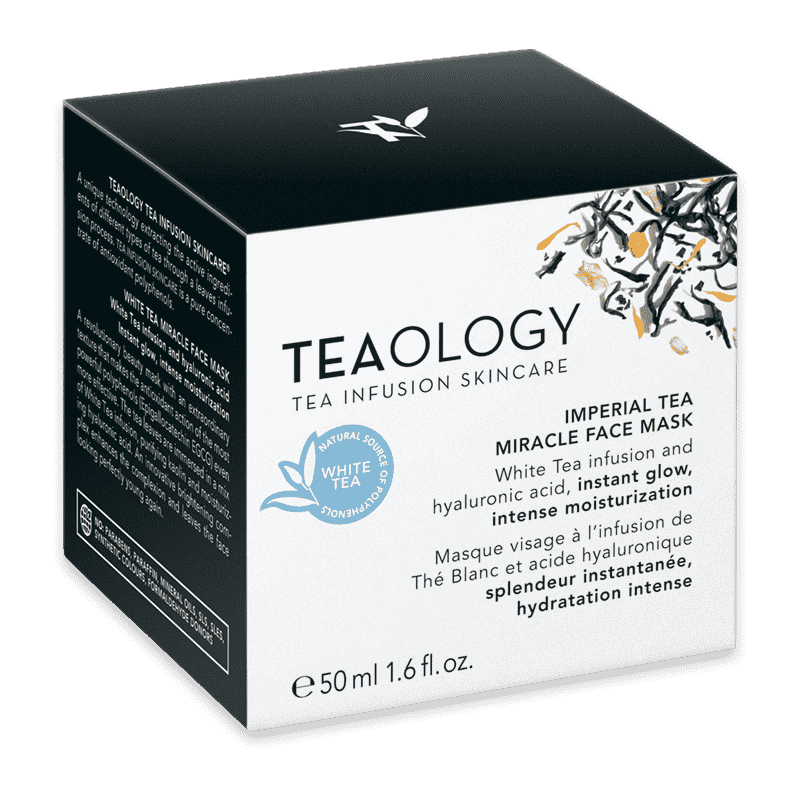 The Imperial Tea Miracle Face Mask by TEAOLOGY instantly gives you a radiant complexion. The revolutionary beauty mask with an extraordinary texture is formulated with an infusion of white tea leaves, enhancing the antioxidant effect of the strongest polyphenols (Epigallocatechin EGCG) even more effectively. The real tea leaves are immersed in a cleansing blend of kaolin (clay) and moisturizing, plumping hyaluronic acid. The innovative brightening complex based on evening primrose and daisy extracts evens out the complexion and makes the face look perfectly youthful again. Apply an even layer to dry face and neck, avoiding the eye area. Rinse off after 5 to 10 minutes. Use once or twice a week. For the eye area, use the White Tea Miracle Eye Mask.