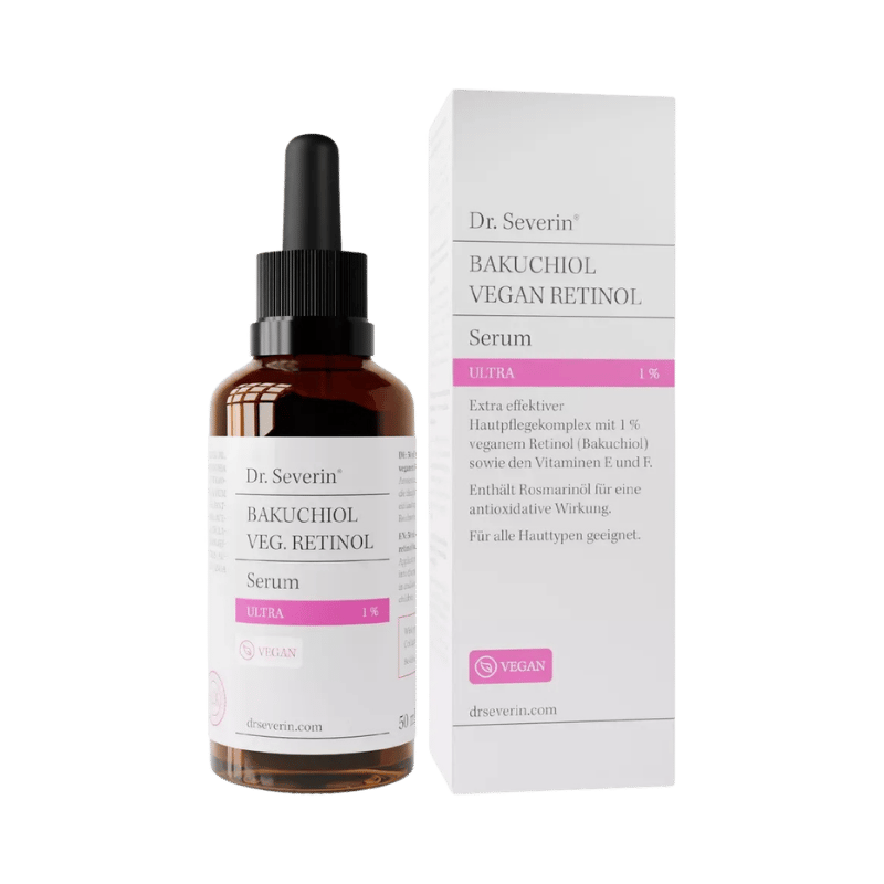 The Dr. Severin 1% Bakuchiol Vegan Retinol Serum Ultra is a groundbreaking skincare product that harnesses the power of nature. Experience the impressive effects of Bakuchiol, a plant-based alternative to retinol. With an impressive concentration of 1%, this serum offers a gentle yet equally effective solution for reducing fine lines, enlarged pores, wrinkles, and sunspots without the potential side effects of retinol. The perfect combination with Vitamin E, Vitamin F, and high-quality oils like Marula, Avocado, and Ylang Ylang provides your skin with intense hydration and regeneration. Treat yourself to this revolutionary care that gives your skin a radiant and youthful appearance. Vegan.
