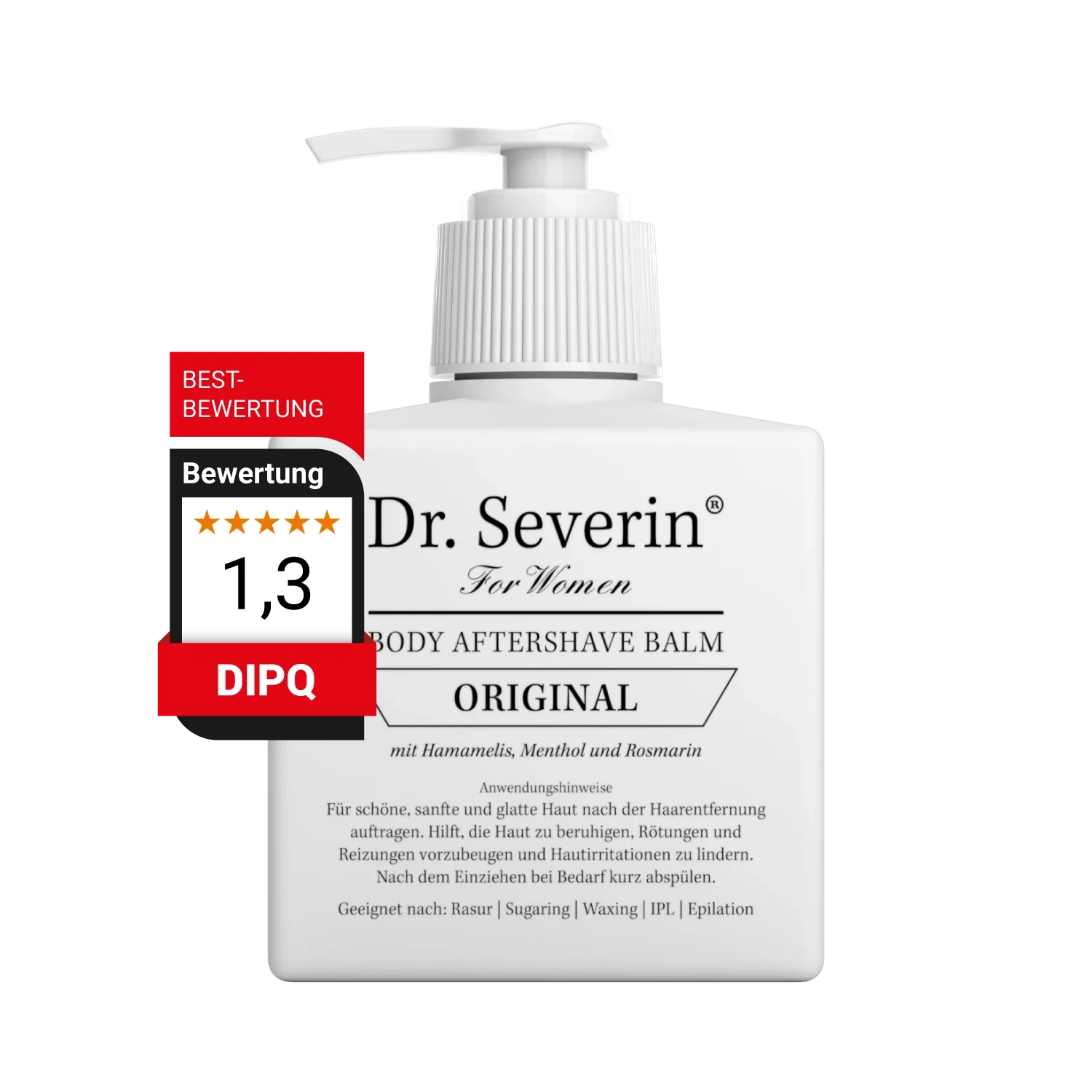 Free your skin from razor bumps, razor burn, and ingrown hairs. The Dr. Severin Women Original Body After Shave Balm is the perfect companion for you. Whether shaving, sugaring, waxing, or epilation: unpleasant side effects are often an unwelcome companion after hair removal. Only an effective aftershave can help: Dr. Severin Original Body After Shave Balm.