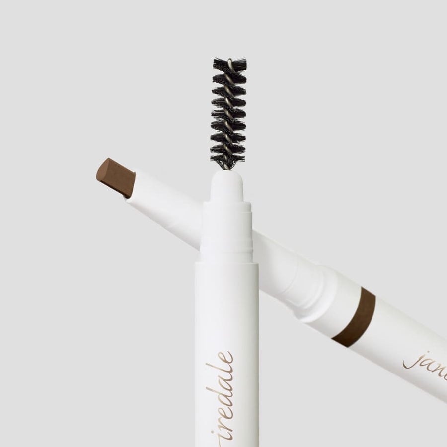 Use the thicker side of the pencil to shape and fill in the brows. Use the finer side of the pencil to outline and define the eyebrows.