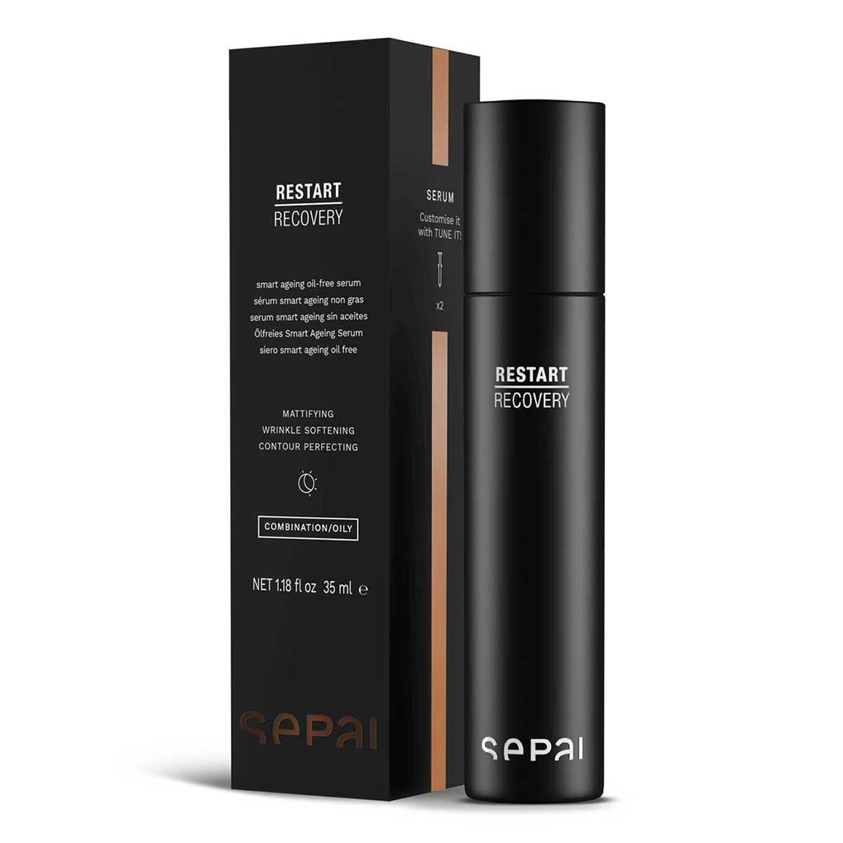 RESTART by SEPAI is an oil-free gel serum that visibly improves the complexion and makes the skin look healthier and younger. Hyaluronic acid provides moisture. RESTART helps the skin combat the aging process triggered by environmental factors. "Customise it" - can be personalized with up to two extracts from the TUNE IT series. Suitable for normal to oily skin. Vegan. Free from parabens, isothiazolinones, imidazolidinyl urea, allergenic preservatives, BHT, BHA, aggressive emulsifiers and surfactants, petroleum-based ingredients (paraffins, petrolatum, PEG), silicones, allergens, solvents, additives, potentially skin-irritating substances, and others.